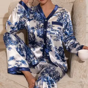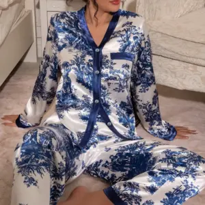 Price range: 29,92 € through 33,22 €Women’s Satin Lace Trimmed Pajama Set Sexy Cozy Two Piece Pajama Set Home Wear For Fall/Winter