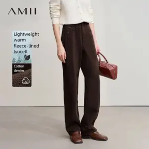 Amii Cotton Jeans 2025 Winter New Solid Color Loose Wide-leg Denim Pant Thicken Warm Versatile Jean Trousers For Ladies 12554073