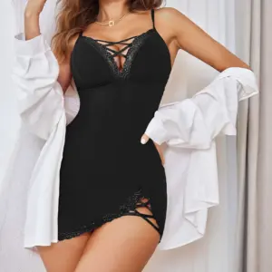 Sexy mesh nightgown with lace and lace, tempting perspective sleepwear, women’s outerwear, home clothes