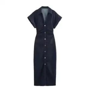 Denim Dress Women’s Spring Summer Casual Long Dresses For Women 2026 New Fashion Ruched Short Sleeve Streetwear Midi Dress