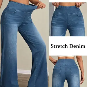 Women’s high-rise wide-leg jeans with tummy tuck, slim fit, made from stretch denim fabric, are stylish for casual everyday wear
