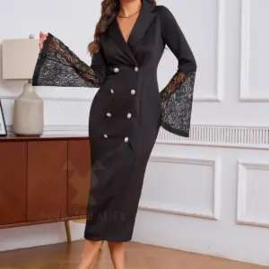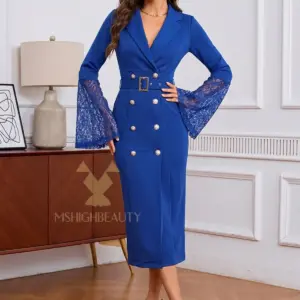 Women’s Royal Blazer Dress Long Sleeve Lace Bell Cuffs Double Breasted Belted Bodycon Midi Dress for Party Office