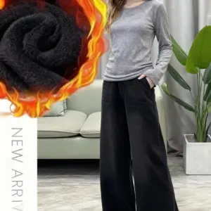 Y2k Pants Jeans for Woman Winter Fleece Lined 2025 New Thick Warmth Slim Wide Leg Straight Trousers Fashion casual